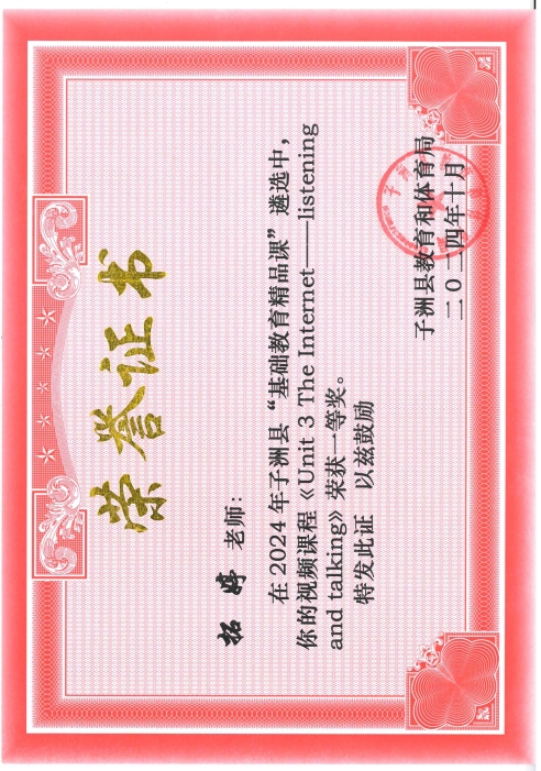 2024年10月01日 荣获 2024年子洲县“基础教育精品课”一等奖 县级 一等