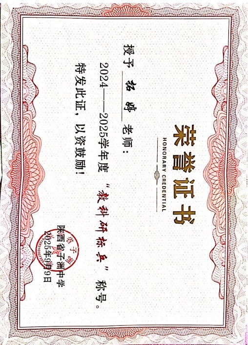 2025年09月09日 荣获 2024-2025学年度“教科研标兵” 学校级 其他