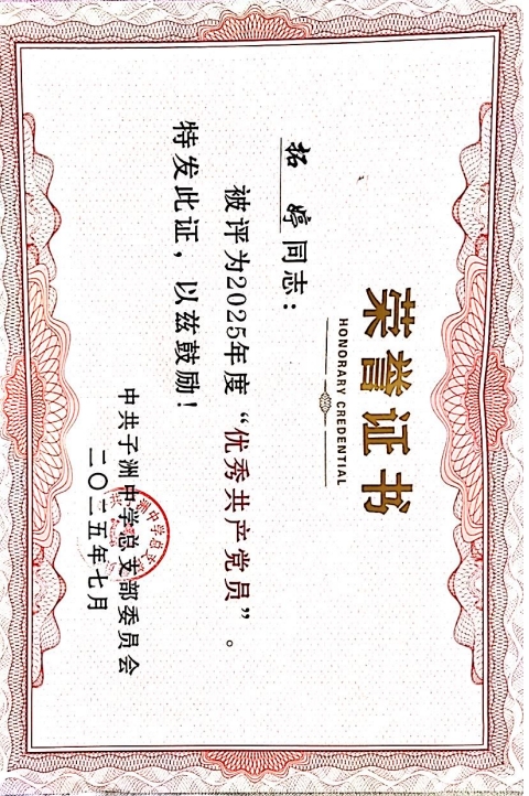 2025年07月01日 荣获 2025年度“优秀共产党员” 学校级 未评等级