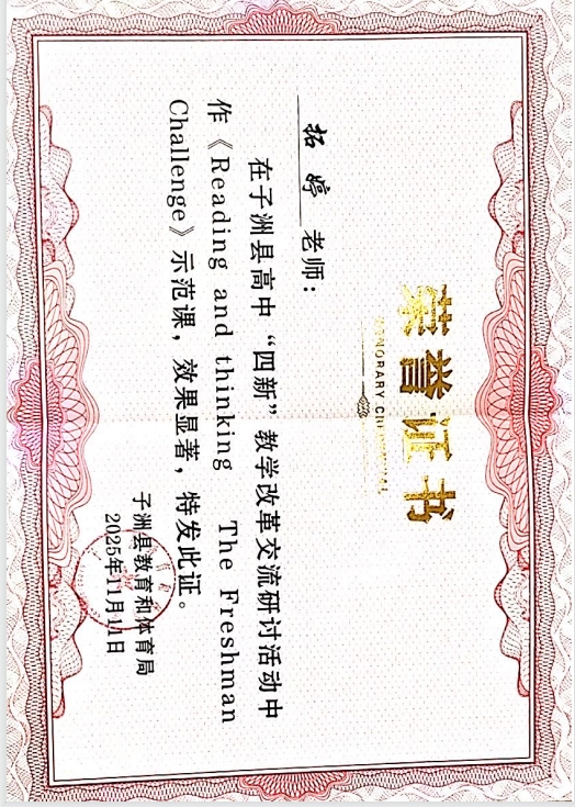 2025年11月11日 荣获 子洲县“四新”教学改革示范课教学 县级 未评等级