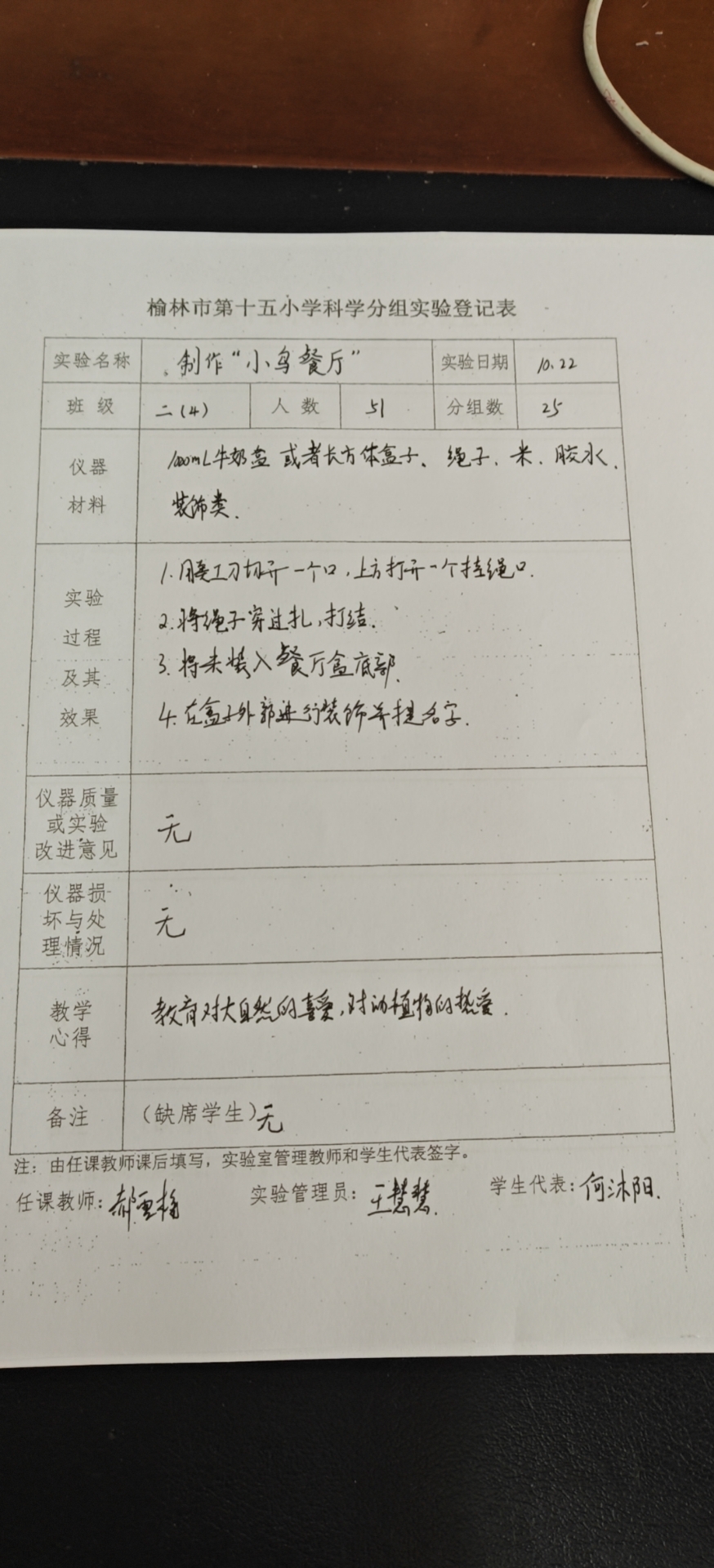 实验登记表