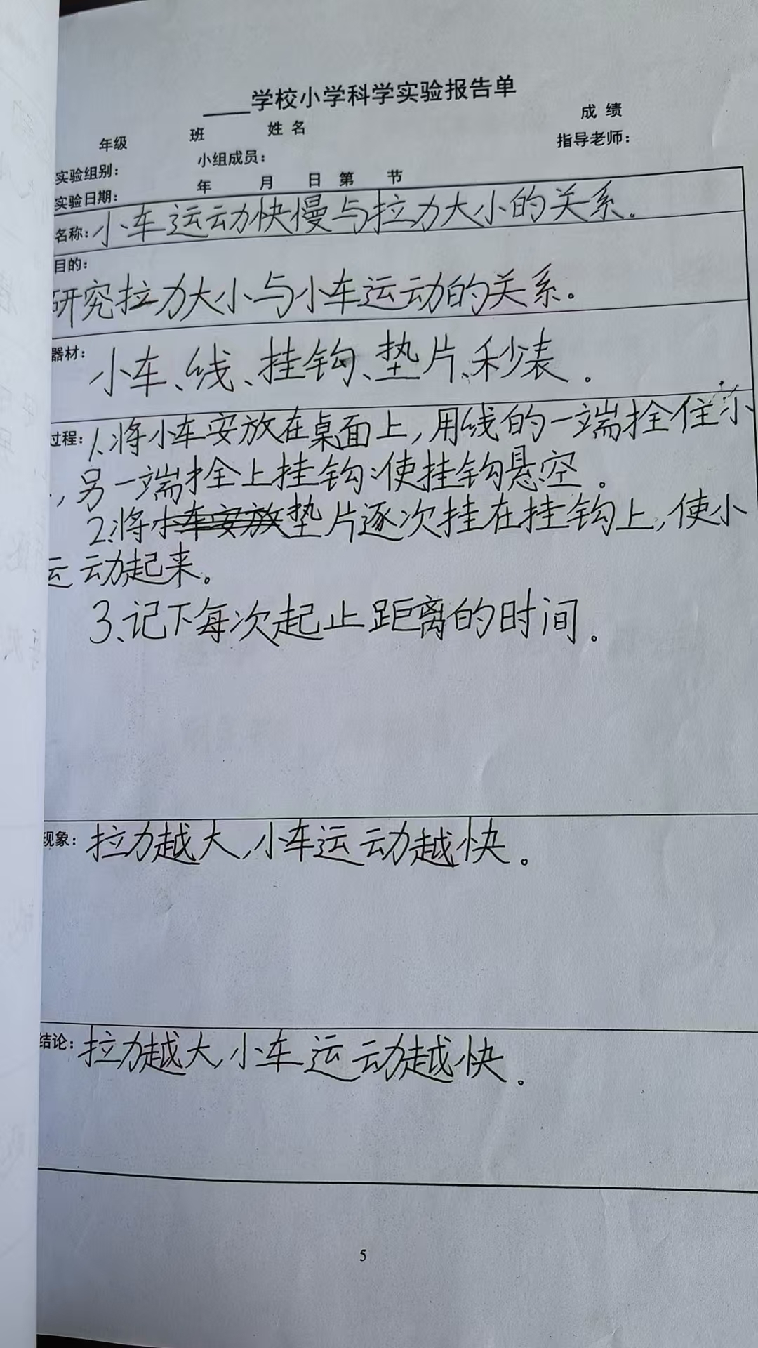 上册-第三章>第一节>3.1小车运动快慢与拉力大小的关系