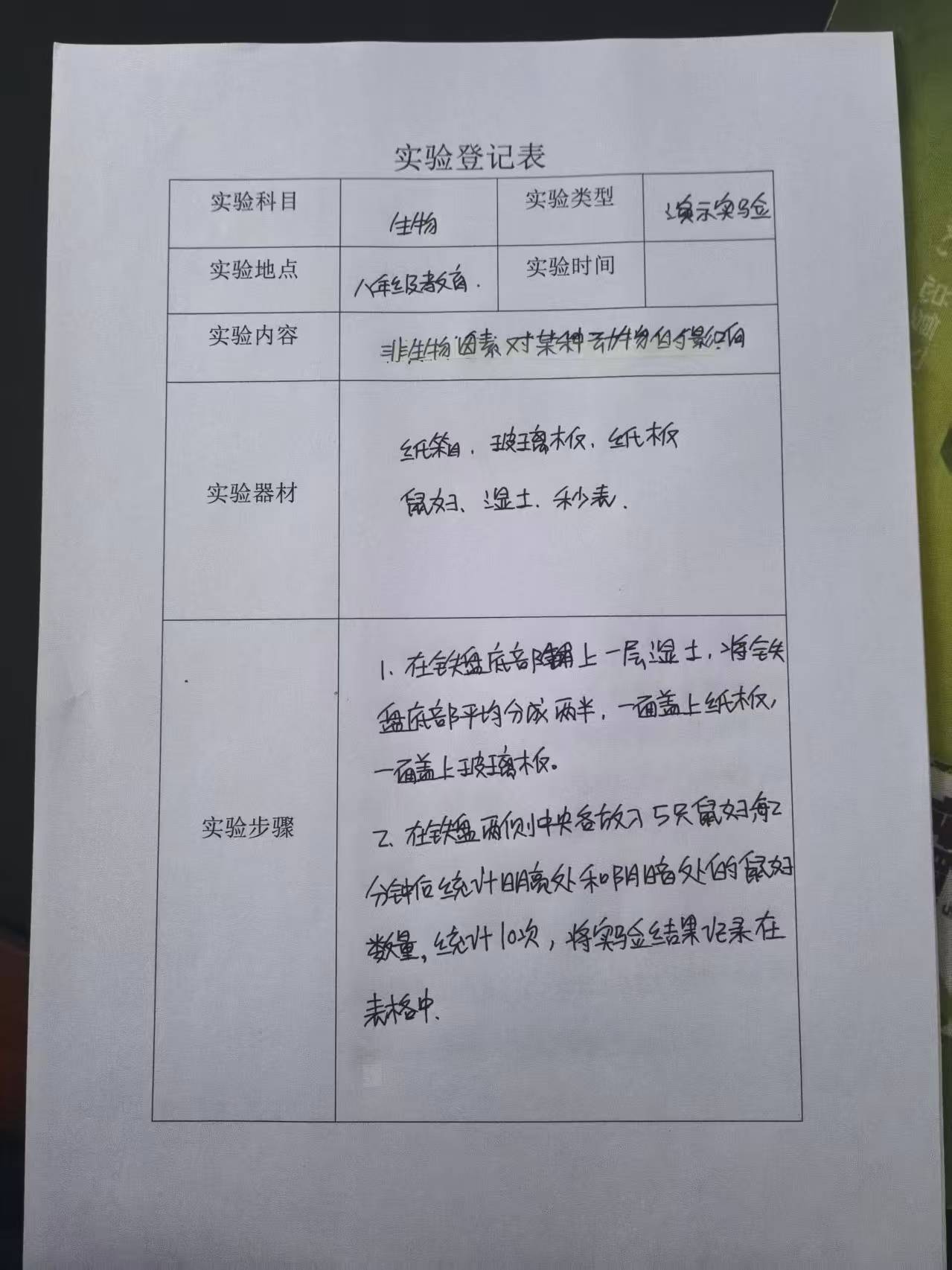 实验登记表