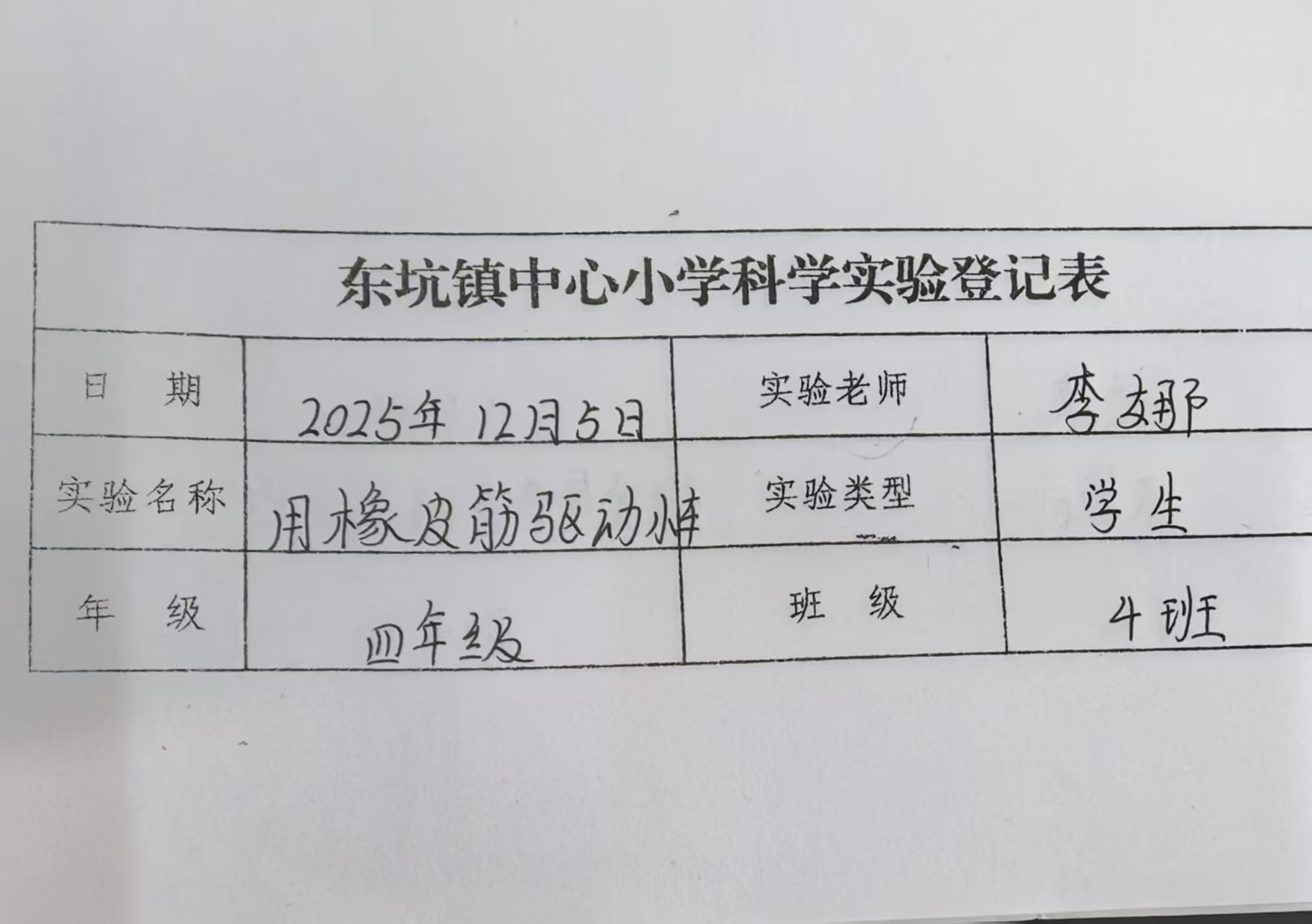 实验登记表