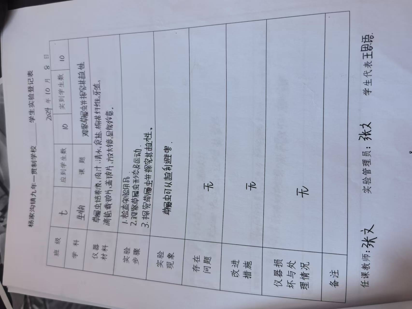 实验登记表