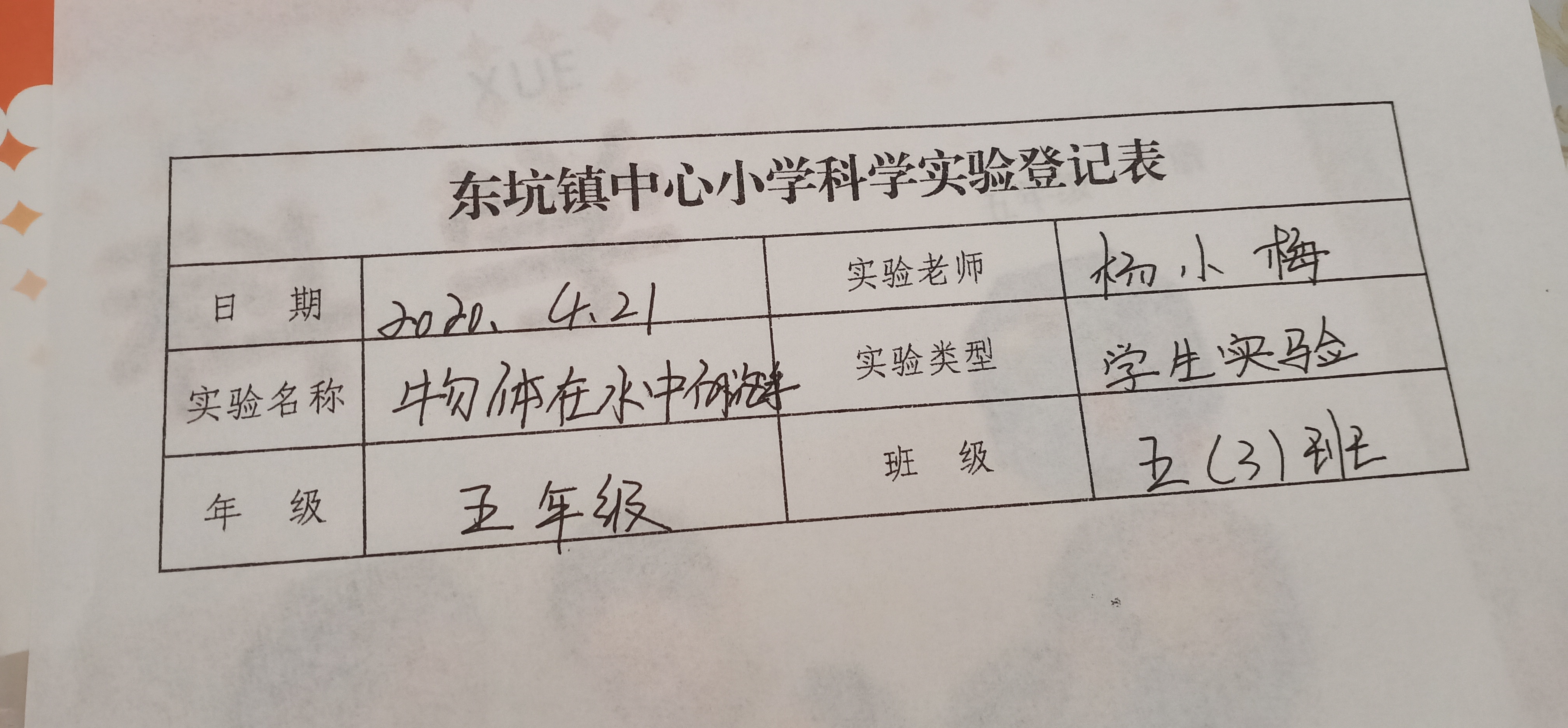 实验登记表