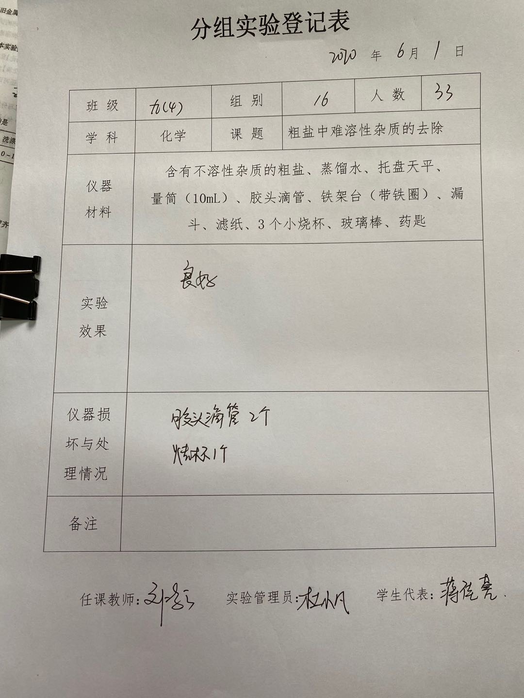 实验登记表