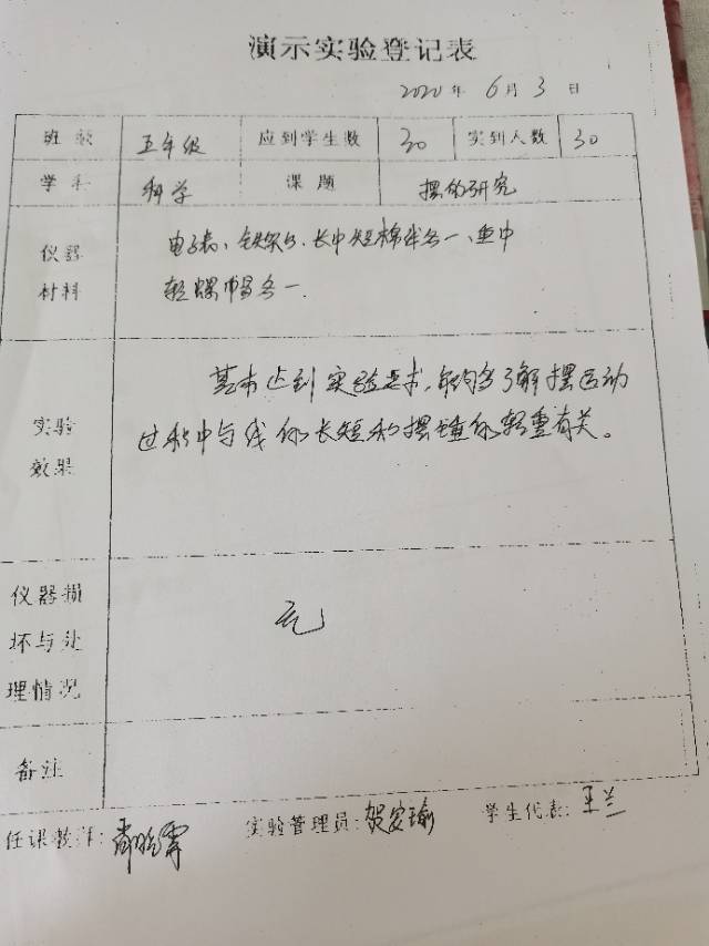实验登记表