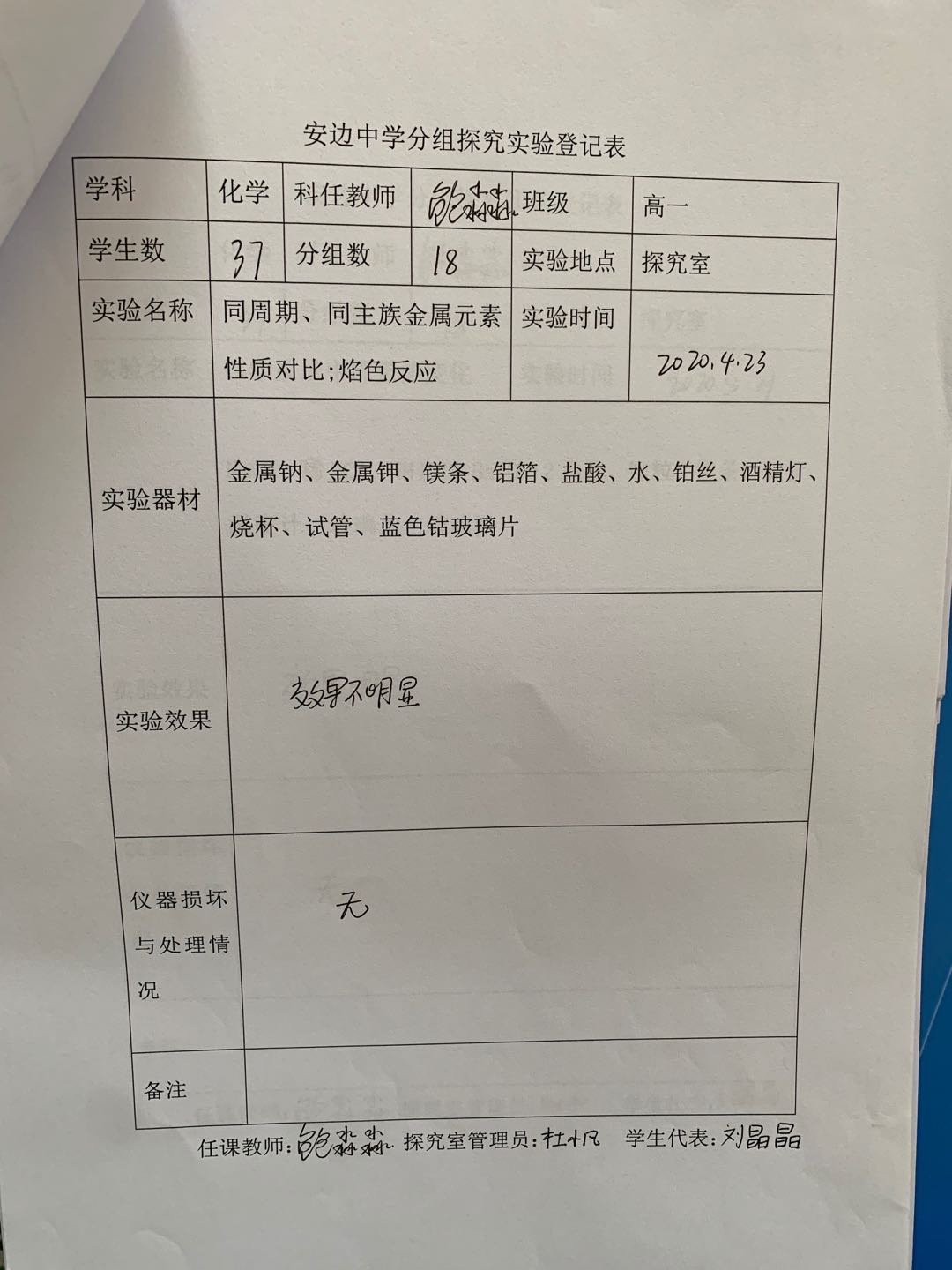 实验登记表
