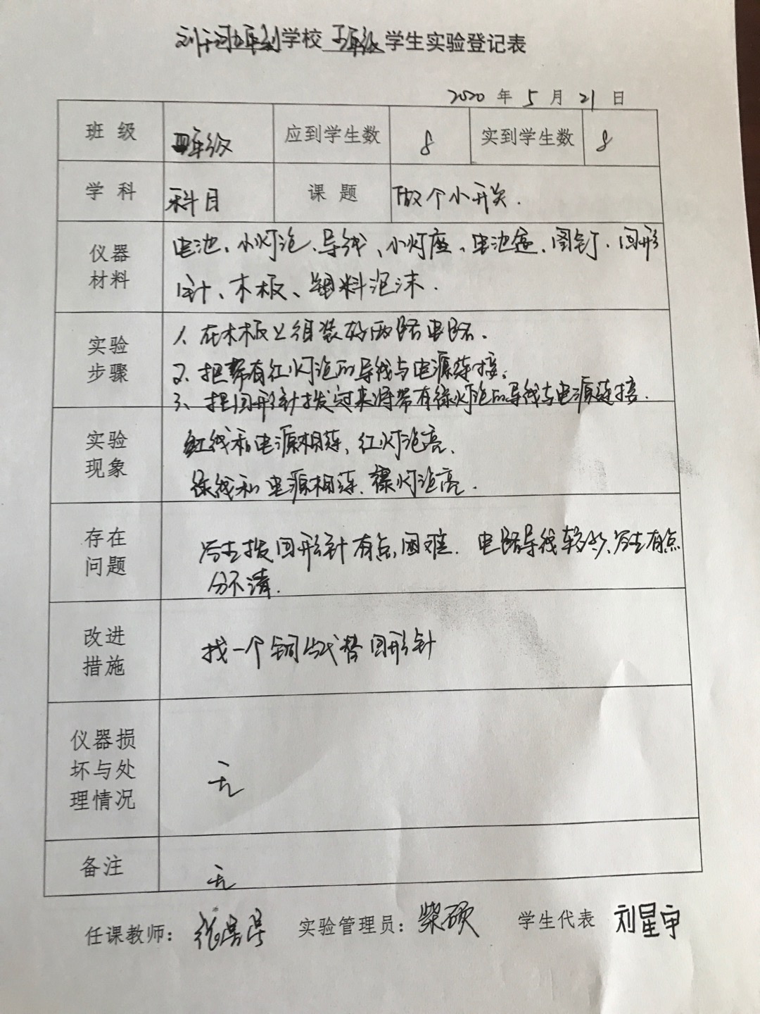 实验登记表