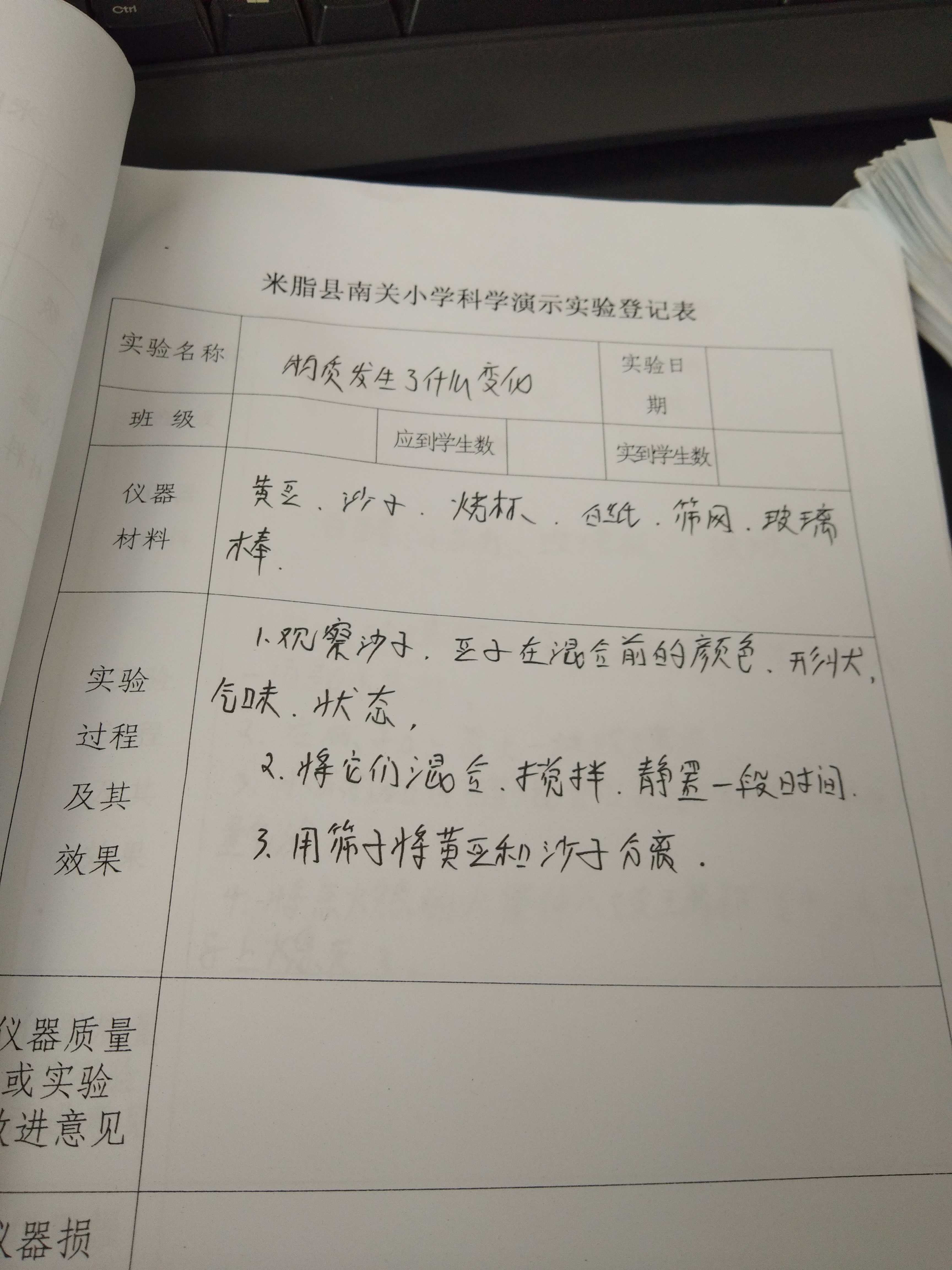 实验登记表