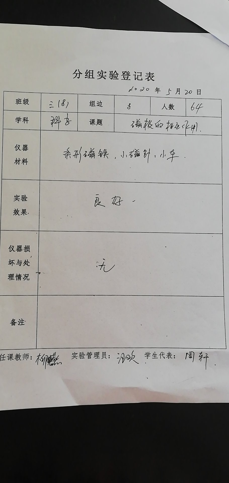 实验登记表